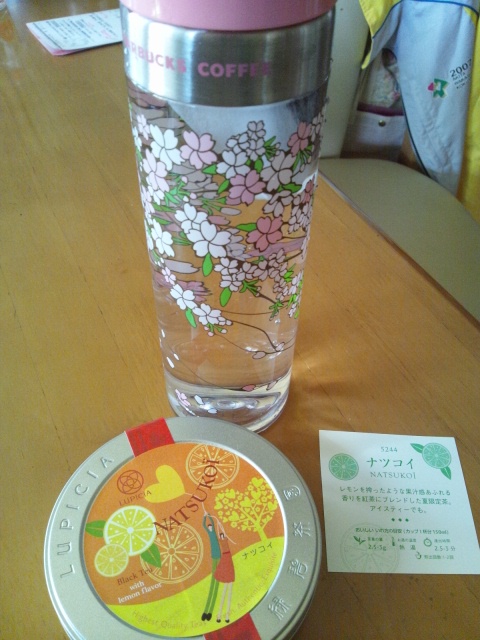 ナツコイを、桜柄のタンブラーでじっくり水出し…